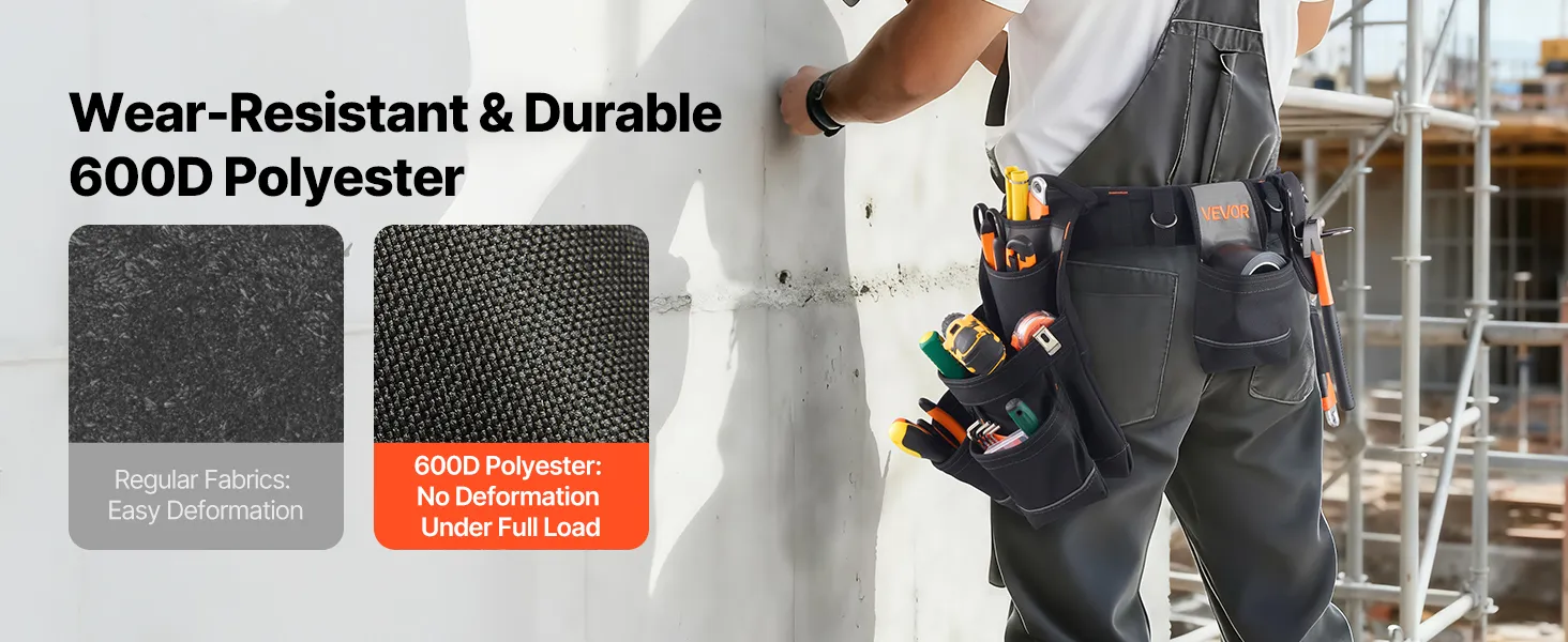 Abrasion & Tear-Resistant: Featuring 600D reinforced polyester with double-stitched seams and bound edges, our framers tool belt resists wear, tearing, sagging, and curling even under heavy tools, a full load, or in construction. Built for pros and DIYers