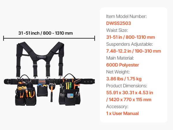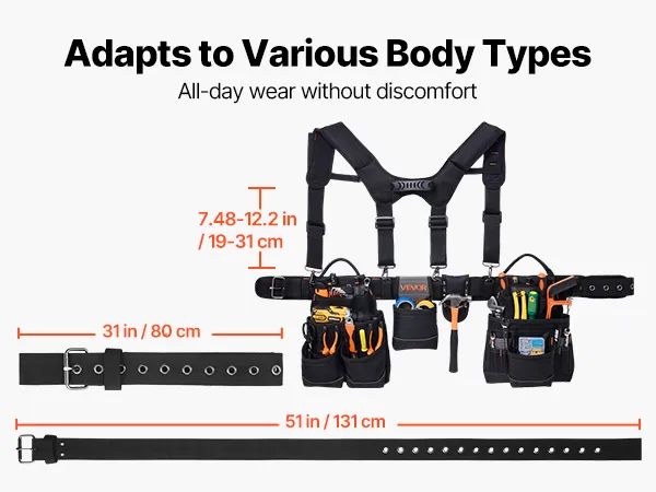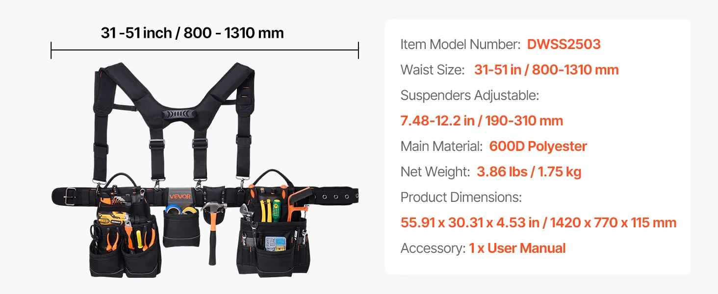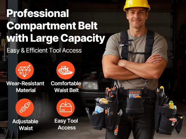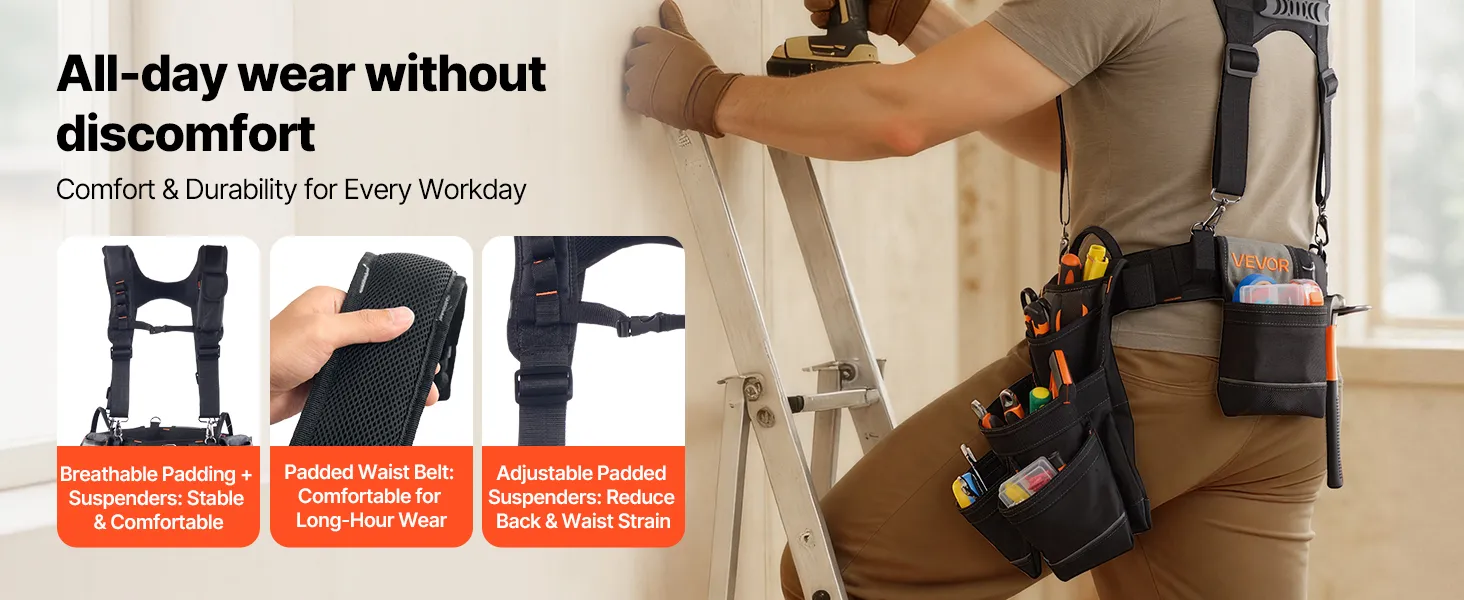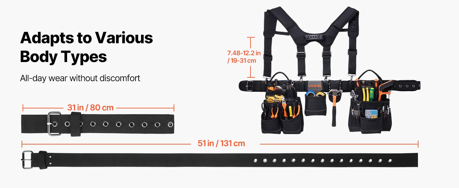 Versatile Use: Ideal for carpenters, electricians, construction workers, and DIYers, this construction tool belt keeps your tools organized and hands-free. Suitable for heavy-duty work or home repairs, it delivers efficient, all-in-one functionality