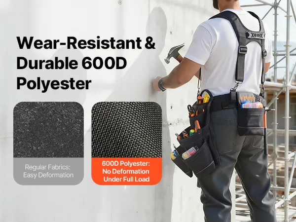 Crafted from 600D polyester, this framers tool belt resists wear and tearing for long-lasting use. It securely holds nails and power tools without deforming or damaging, ensuring stable, reliable performance.