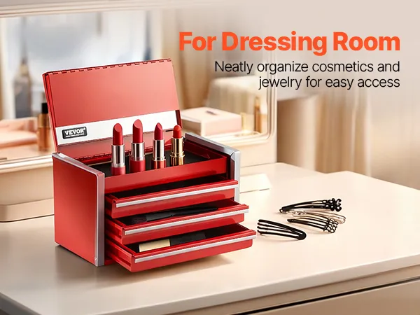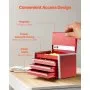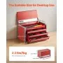 VEVOR Metal Tool Box, 8.6-inch, Portable Metal Tool Box with 3 Drawers, Small Tool Chest with EVA Liners and PP Feet Pads, Heavy-Duty Steel With Ball Bearing Opening and Powder Coated Finish, Red