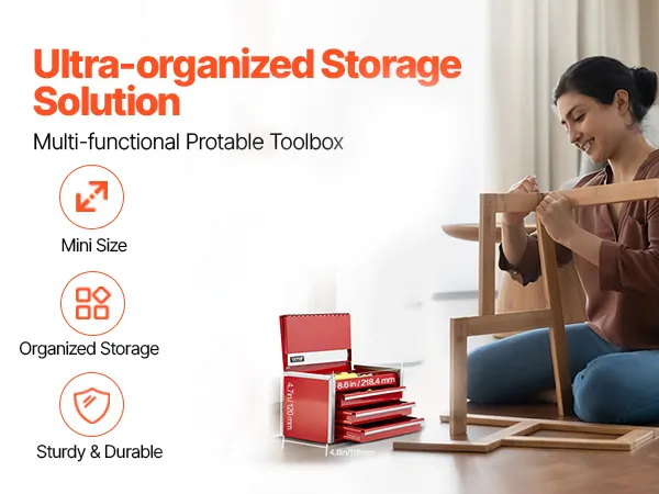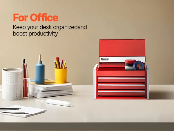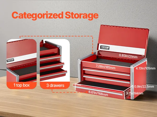 The mini metal tool box features 1 top box and 3 drawers, allowing you to neatly categorize your items and keep your desk tidy and clutter-free.