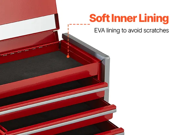 Efficient Organization: The metal tool box is designed with multiple layers, making full use of vertical space to store more items. The top box and drawers allow you to organize different items neatly for easy access. The built-in protective padding minimizes noise from sliding or collision, providing extra protection to avoid scratches and impacts, enhancing security.
