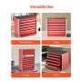 VEVOR Metal Tool Box, 8.6-inch, Portable Metal Tool Box with 5 Drawers, Small Tool Chest with EVA Liners and PP Feet Pads, Heavy-Duty Steel With Ball Bearing Opening and Powder Coated Finish, Red