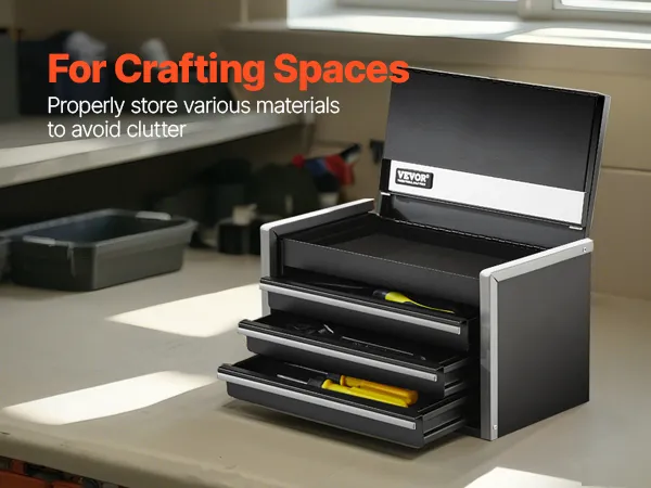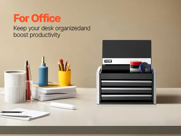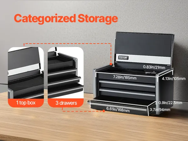 The mini metal tool box features 1 top box and 3 drawers, allowing you to neatly categorize your items and keep your desk tidy and clutter-free.