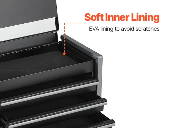 Efficient Organization: The metal tool box is designed with multiple layers, making full use of vertical space to store more items. The top box and drawers allow you to organize different items neatly for easy access. The built-in protective padding minimizes noise from sliding or collision, providing extra protection to avoid scratches and impacts, enhancing security.