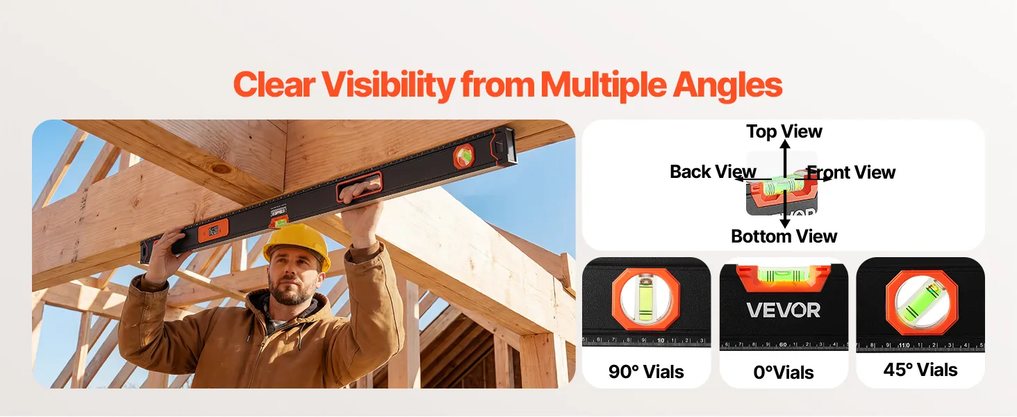 Magnetic Base: Equipped with strong magnets, this torpedo level attaches securely to metal surfaces for hands-free operation. The centered handle provides balanced, comfortable one-hand use