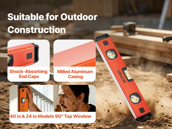 Built for the Job: Made with a premium aluminum alloy casing for daily use. Shock-absorbing end caps of the leveler tool help protect against drop damage