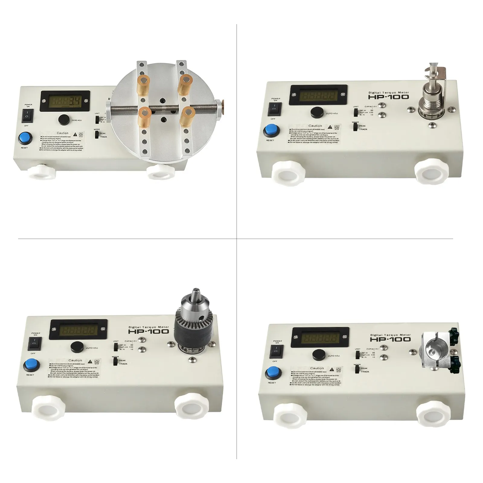 The LCD digital torque meter can be used with various types of shaft fixtures, bottle cap fixtures, and bulb fixtures to meet different test requirements.