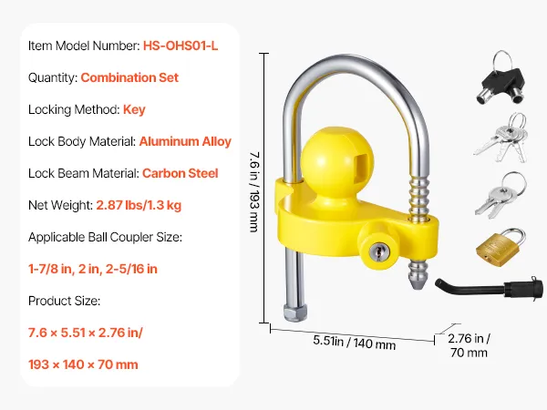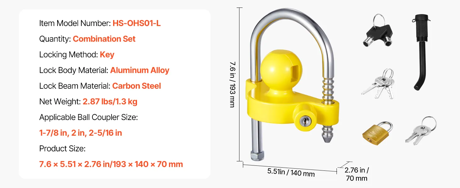 Universal Size: This ball hitch lock features a universal fit for 1-7/8, 2 in, and 2-5/16 in couplers, meeting the needs of multiple trailers. Please confirm your coupler size before purchase to ensure the lock matches your trailer