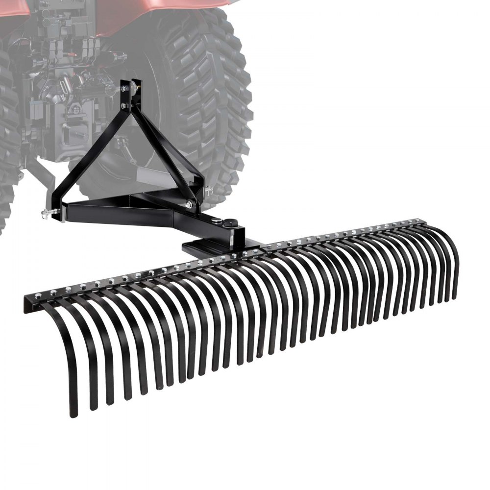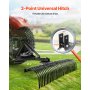 VEVOR Tow Behind Dethatcher, 183 cm Tow Dethatcher with 36 Steel Tines, 3-Point Lawn Dethatchers Rake with Attachments for Tractor, Landscape Rake for Garden, Farm, Grass