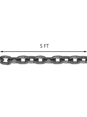 5/16'' x 5' long chain is made of G80 Mn-steel. It is wear-resistant and will not extend when stressed.