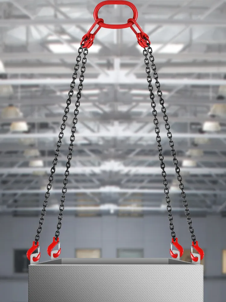 This Chain Sling of four legs is constructed of a G80 Mn-steel chain and alloy steel hook with powder coating, which will not extend when stressed. It is wear and high temperature resistant to ensure long service life, which is a useful tool for improving work efficiency.