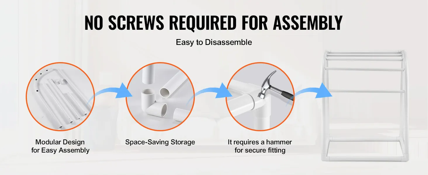 It is easy to assemble this pool towel rack. You can put it together in just a few minutes. No special tools are required. The pieces fit snugly. The construction is strong and built to last. The materials used are durable PVC. This ensures that the rack remains stable and strong. It can handle multiple wet towels. There’s no need to worry about tipping over. Our rack is made for outdoor conditions for years without needing replacement. Enjoy a dependable and long-lasting towel storage solution.