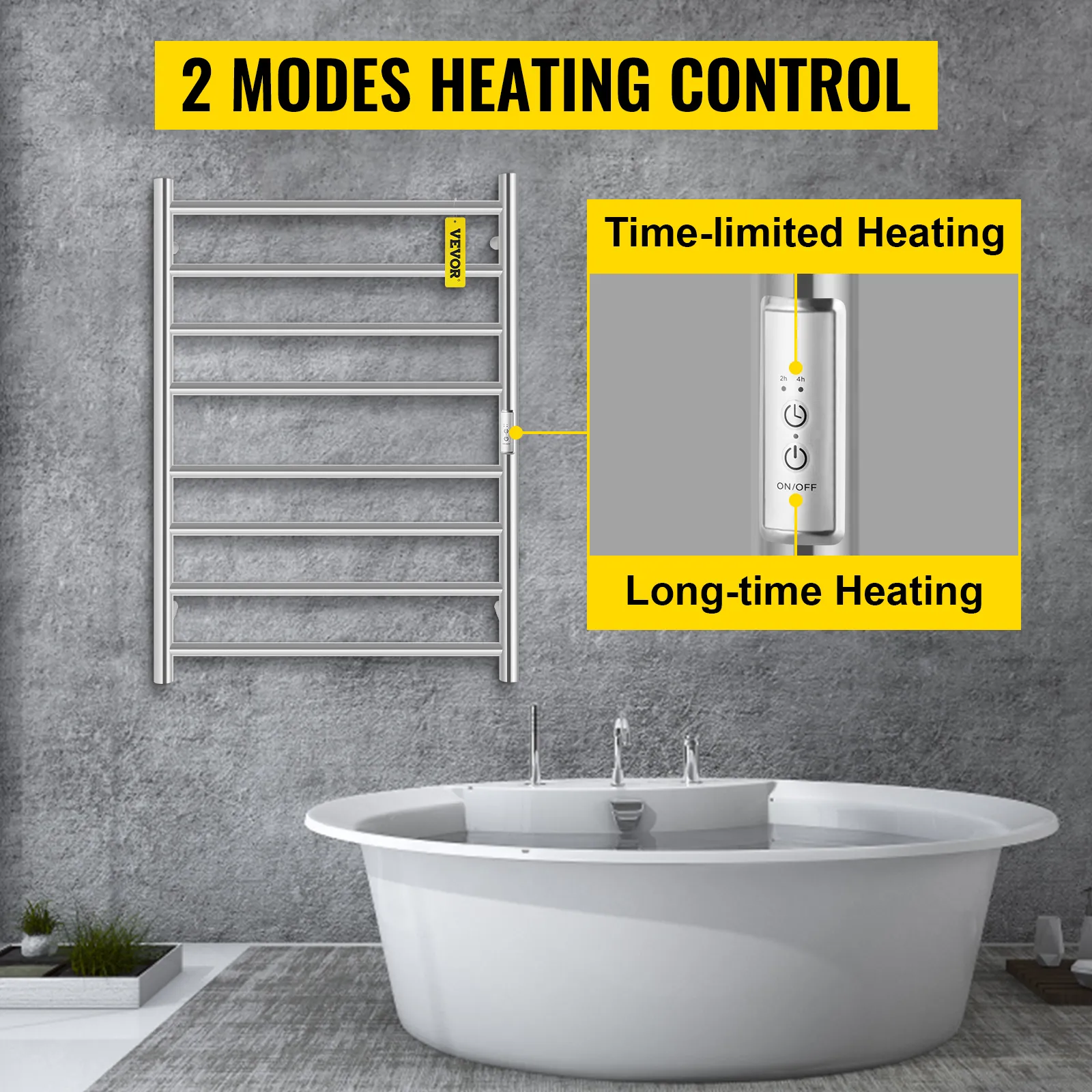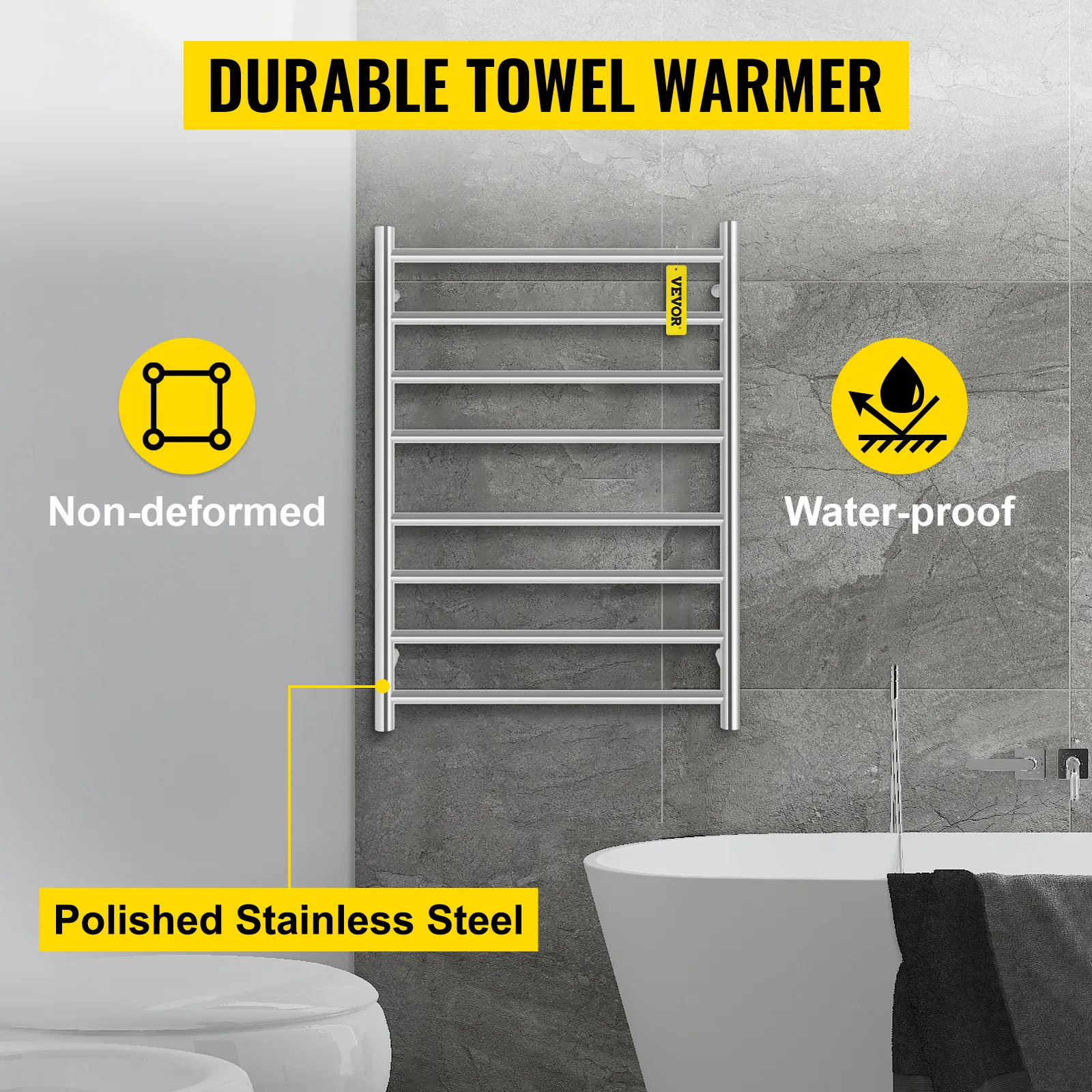 VEVOR Heated Towel Rack Electric Clothes Heater Warmer 8 Bars 830x600mm Silver