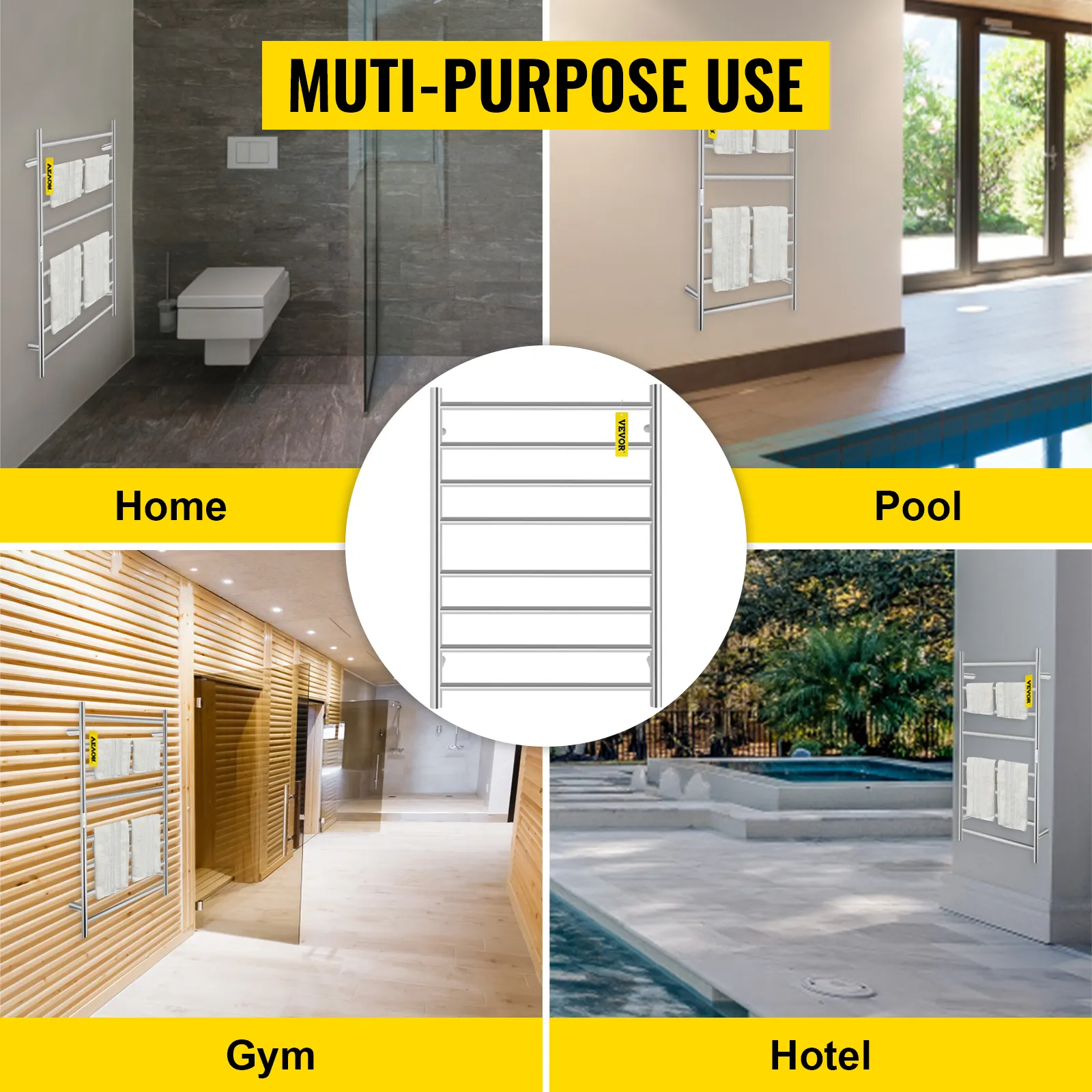 • Wide Application: Compatible with homes, hotels, pools, etc., the heated towel warmer is widely applied for different occasions for warming your wet clothes and towels, providing a warm and comfortable feeling after your shower.