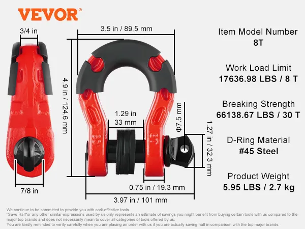 The VEVOR mechanics is the best companion for automotive traction. Its strong alloy steel construction ensures safe and efficient towing. The D-shaped design makes it reliable for all tow scenarios. This shackle handles the job whether you need to lift a jeep, truck, or SUV. Its high-quality forged 45# steel provides superior strength and durability. This makes it an essential tool for any vehicle owner. You can use it for off-road adventures and daily tower needs. Our alloy steel shackle is incredibly easy to install and use. So, you can trust it to perform well under pressure.