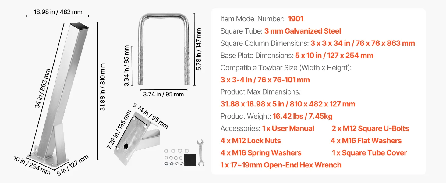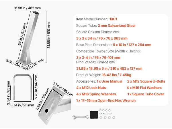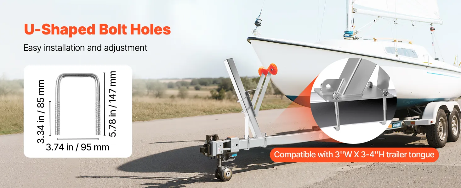 U-Bolt Included: Compatible with 3'' W X 3-4'' H trailer tongues, the U-bolt quickly locks into place for a secure fit. The trailer winch stand is easy to install and ensures the trailer stays stable without any wobbling during transport