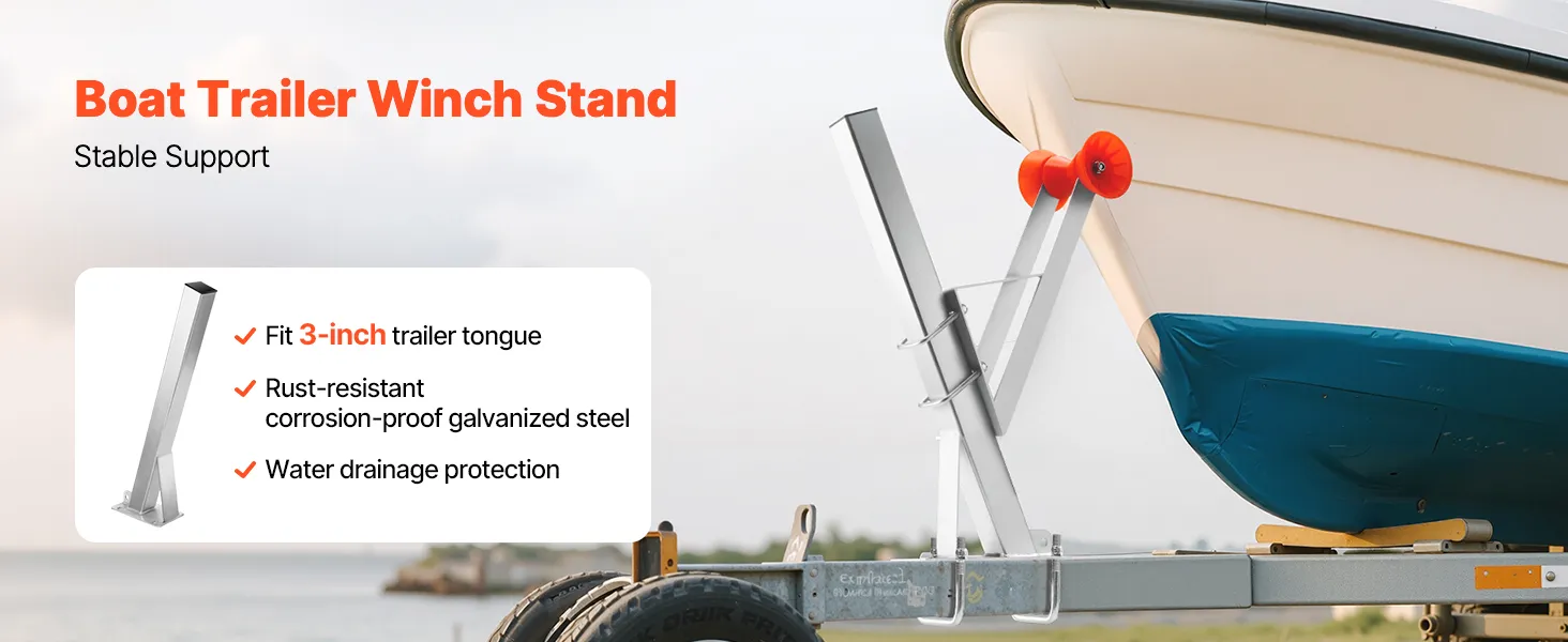 Made with rust-resistant, galvanized steel, this boat winch stand fits a 3-inch trailer tongue greatly. The water drainage design ensures stability and extends its life, keeping your equipment secure and sound!