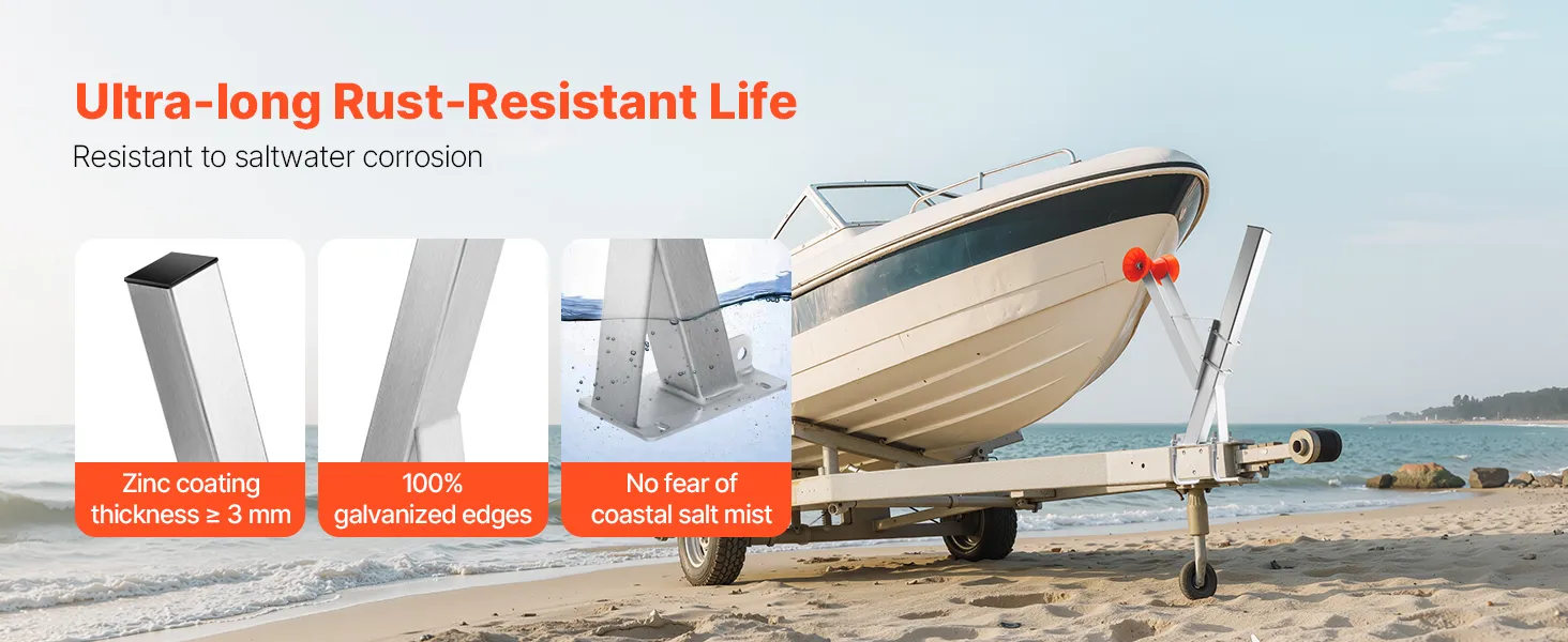 3 mm Thick Hot-Dip Galvanized Steel: Built to withstand corrosion, even when exposed to seawater for extended periods. This durable material of our boat winch stand ensures long-lasting use without rusting, providing reliable performance in harsh marine conditions