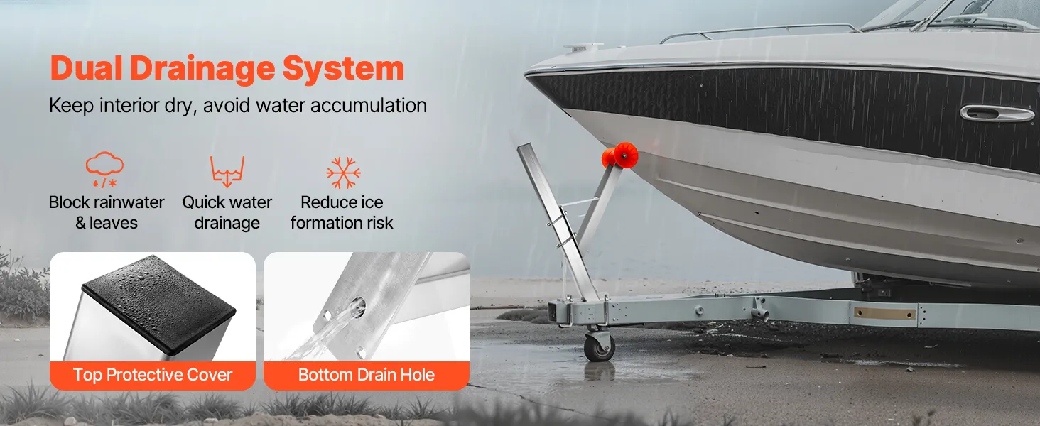 Designed with a top cover and bottom drainage hole, this boat trailer winch mount post avoids water buildup and debris while keeping the inside dry. It reduces freezing risk and ensures your equipment stays protected in any conditions.