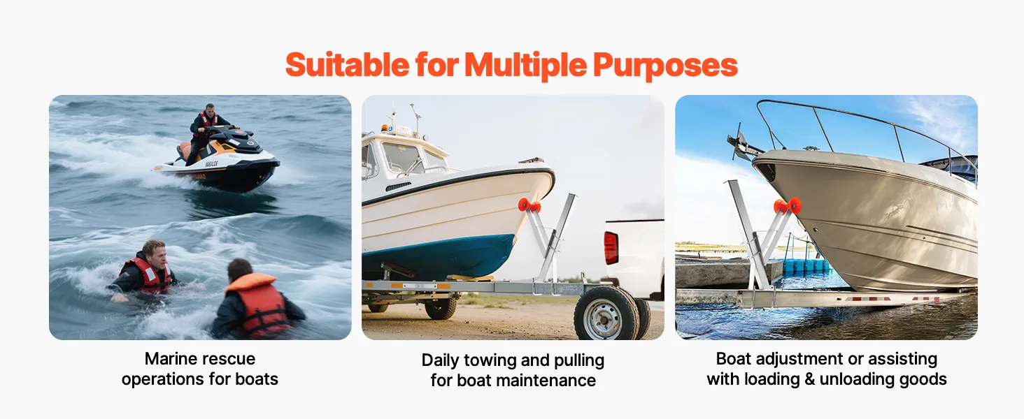 Wide Compatibility: The boat trailer winch mount is suitable for a variety of boats, including fishing boats, speedboats, and jet skis. It's ideal for beaching rescues, shallow-water operations, and offshore deep-sea rescues, ensuring you’re ready for any situation.