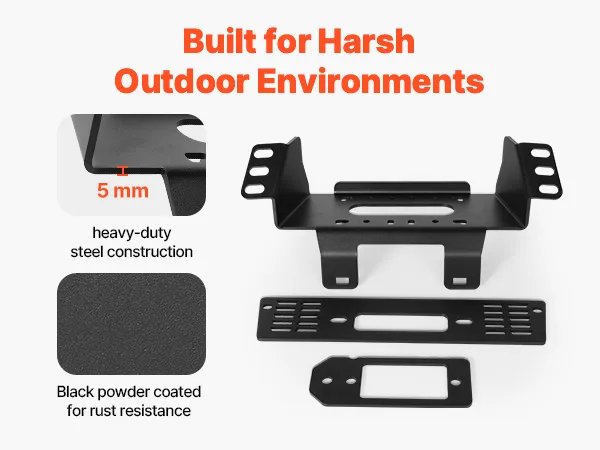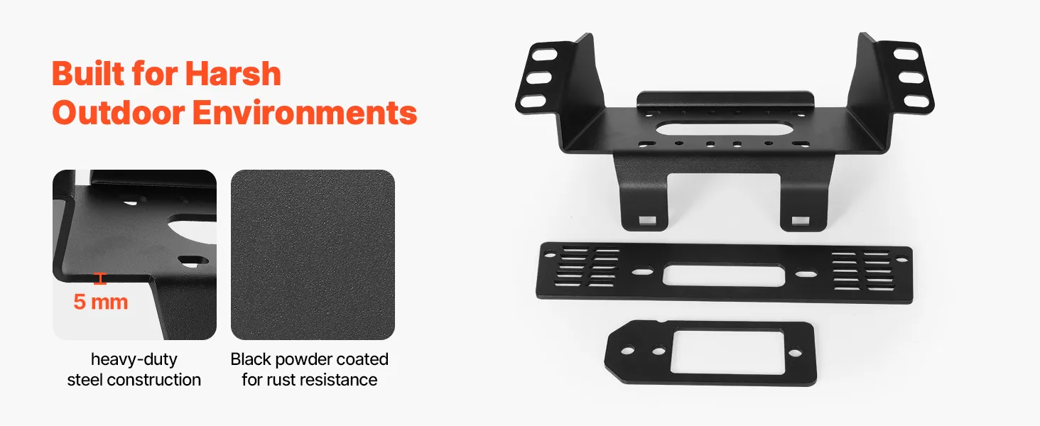 Superior Rust Resistance: Made from 5 mm powder-coated steel, this winch mount is not only rust and corrosion-resistant but also avoids deformation, providing high structural strength for trailer transport and durability in harsh environments.