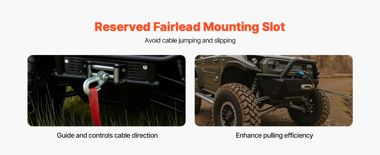 Guide Hook Mount: Pre-installed guide hook mount of the winch receiver hitch mount ensures smooth cable handling, reducing friction and wear. It allows the cable to be released or retracted along a set path, improving security and efficiency during use