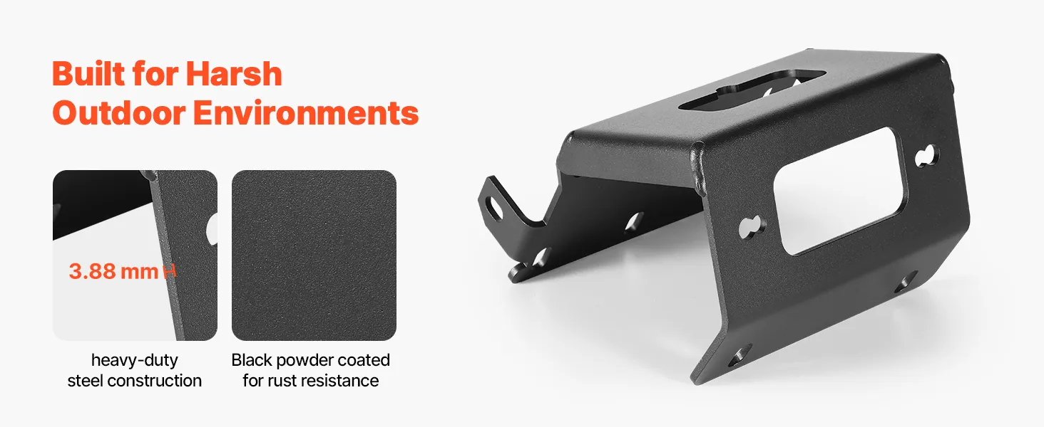 Superior Rust Resistance: Made from 4 mm powder-coated steel, this winch mount is not only rust and corrosion-resistant but also avoids deformation, providing high structural strength for trailer transport and durability in harsh environments.