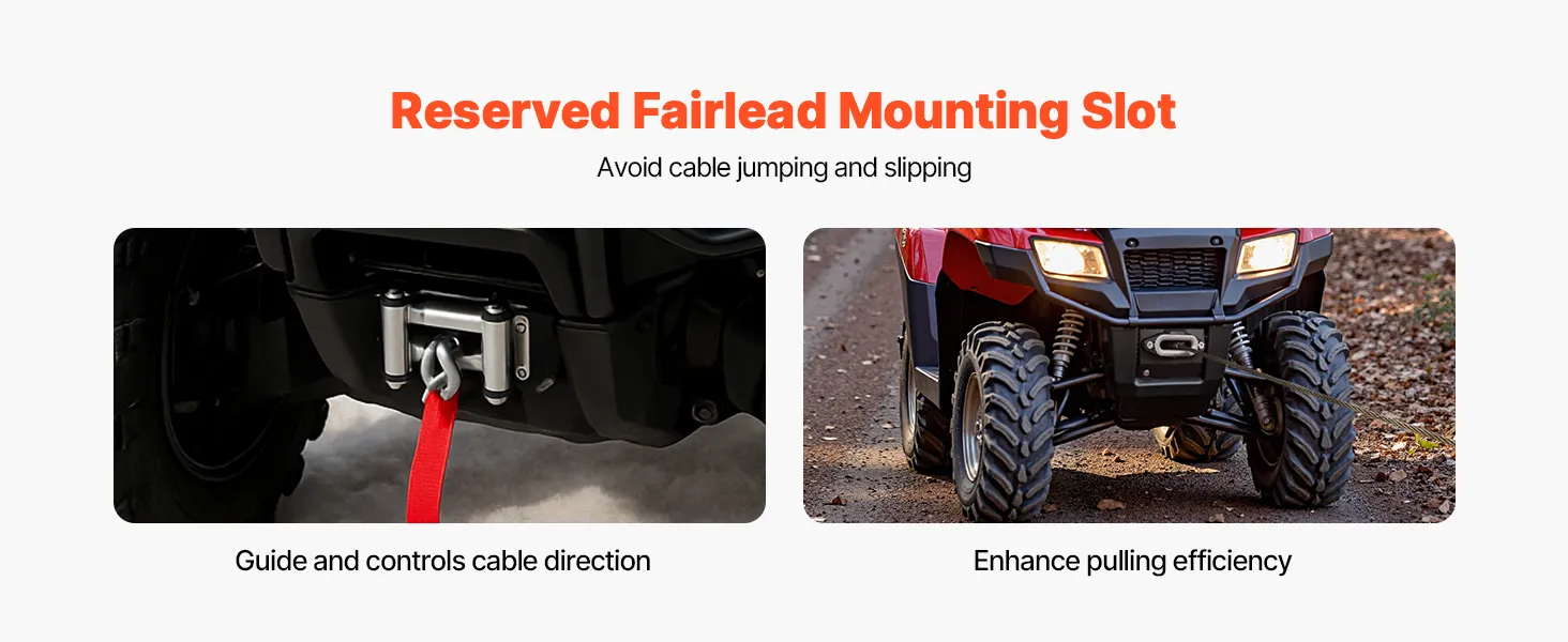 Guide Hook Mount: Pre-installed guide hook mount of the winch receiver hitch mount ensures smooth cable handling, reducing friction and wear. It allows the cable to be released or retracted along a set path, improving security and efficiency during use