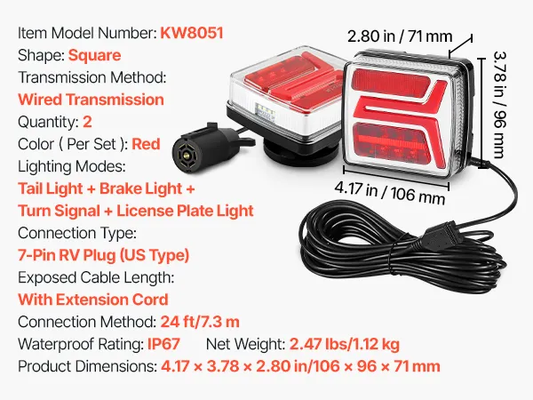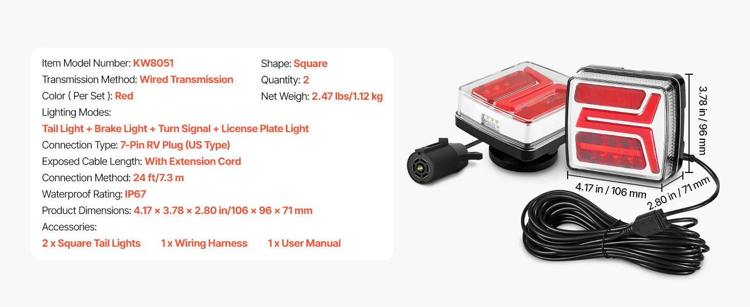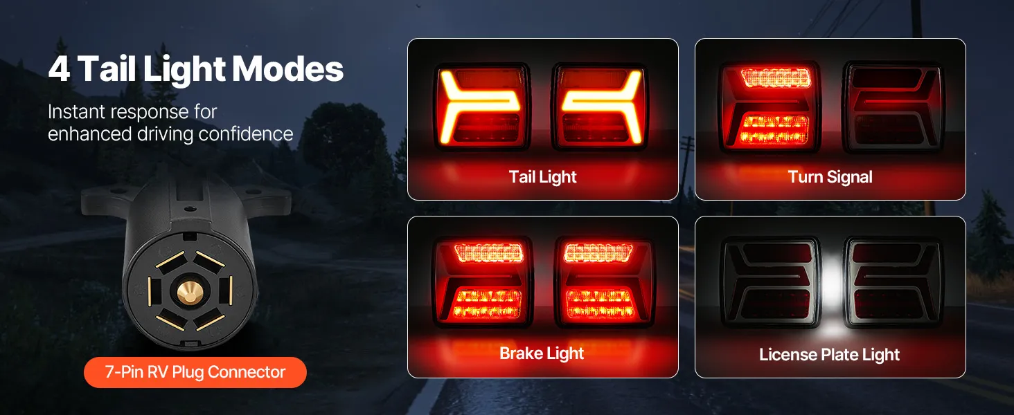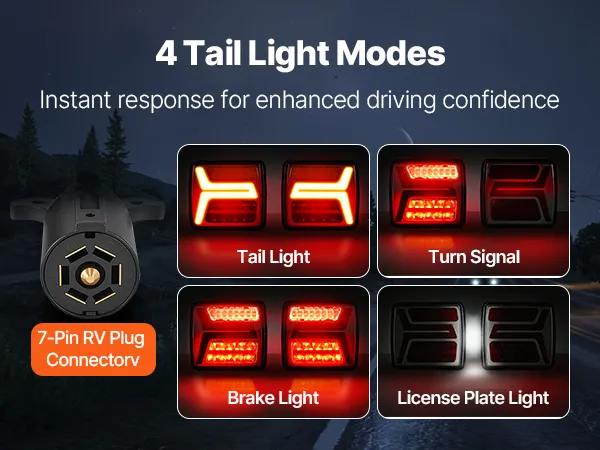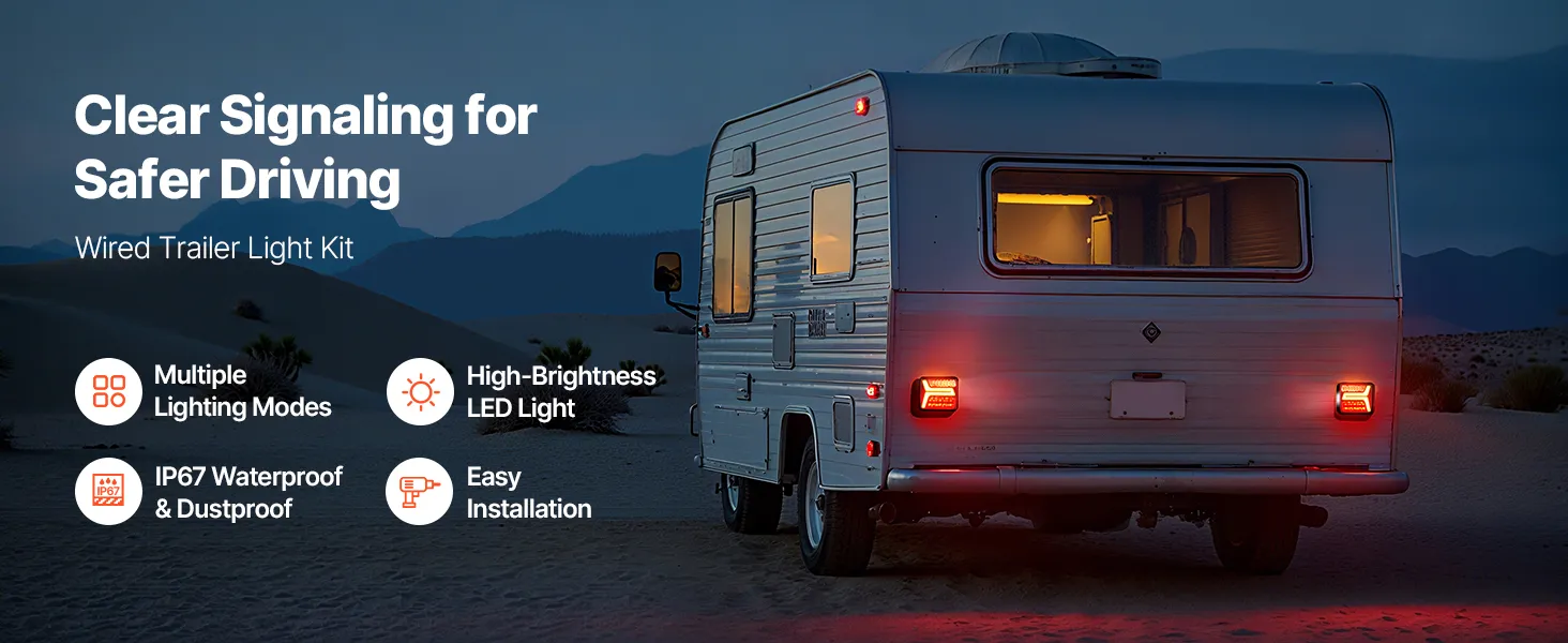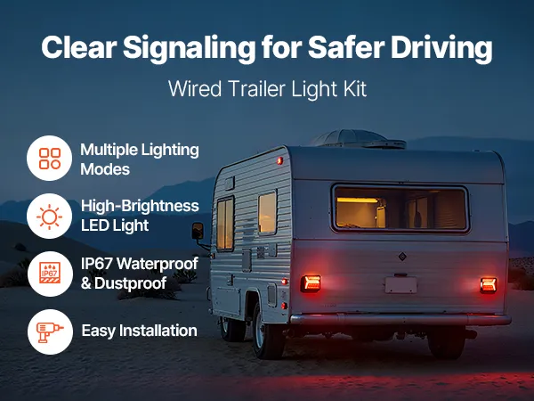 These trailer lights feature multiple lighting modes to convey driving intentions in various conditions. High-brightness LEDs provide clear visibility and IP67 waterproof rating ensures stable performance in bad weather. It is easy to set up, providing driving protection for trailers.