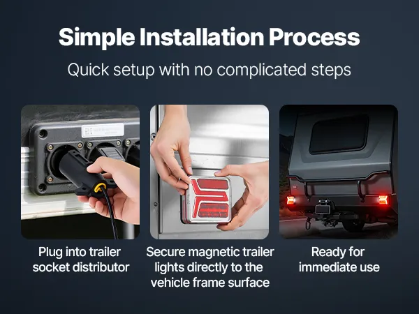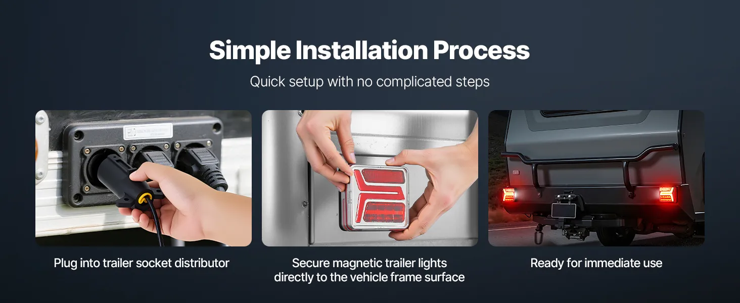 Easy Installation: Our utility trailer lights feature a strong magnetic design for instant use—easily attaching to all metal surfaces. It enables quick, stable mounting on vehicles, trailers, or other metal equipment