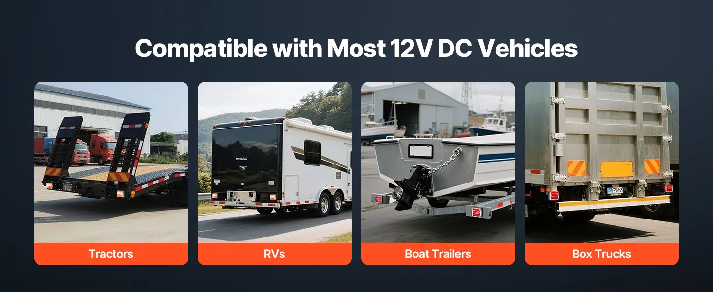 These versatile utility trailer lights work with various DC 12V vehicles, including RVs, boat trailers, utility trailers, and box trucks. Suitable for daily use and special scenarios, it ensures reliable vehicle lighting and warning functions.