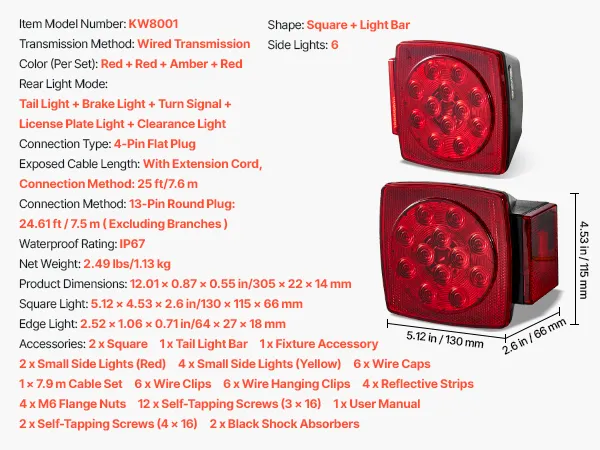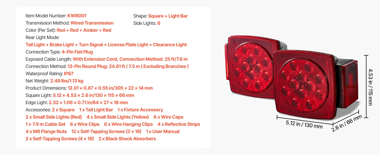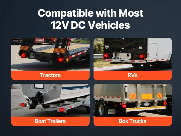 These versatile utility trailer lights work with various DC 12V vehicles, including RVs, boat trailers, utility trailers, and box trucks. Suitable for daily use and special scenarios, it ensures reliable vehicle lighting and warning functions.