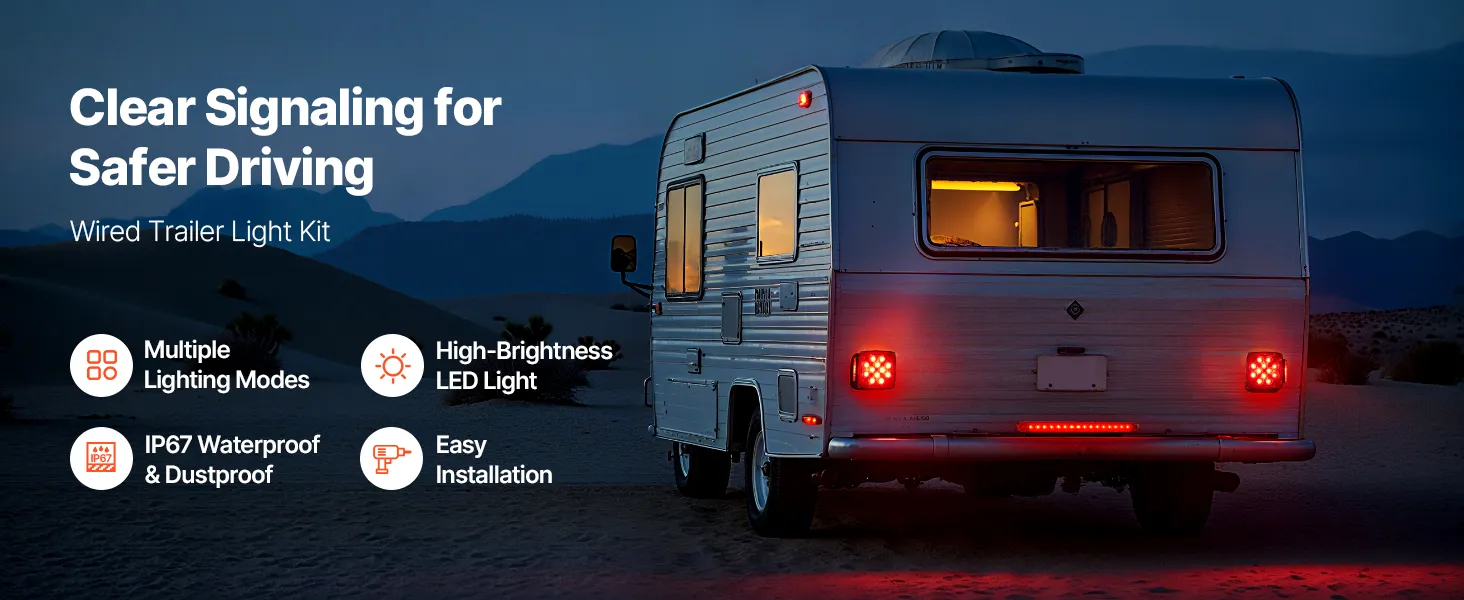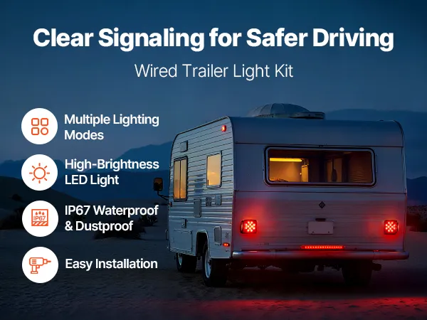These trailer lights feature multiple lighting modes to convey driving intentions in various conditions. High-brightness LEDs provide clear visibility and IP67 waterproof rating ensures stable performance in bad weather. It is easy to set up, providing driving protection for trailers.