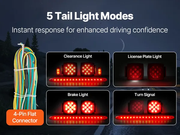 Our trailer light kit provides multi lighting patterns to convey driving intentions in various conditions. Fast connections, rapid signal transmission, and instant light activation improve driving protection and convenience.