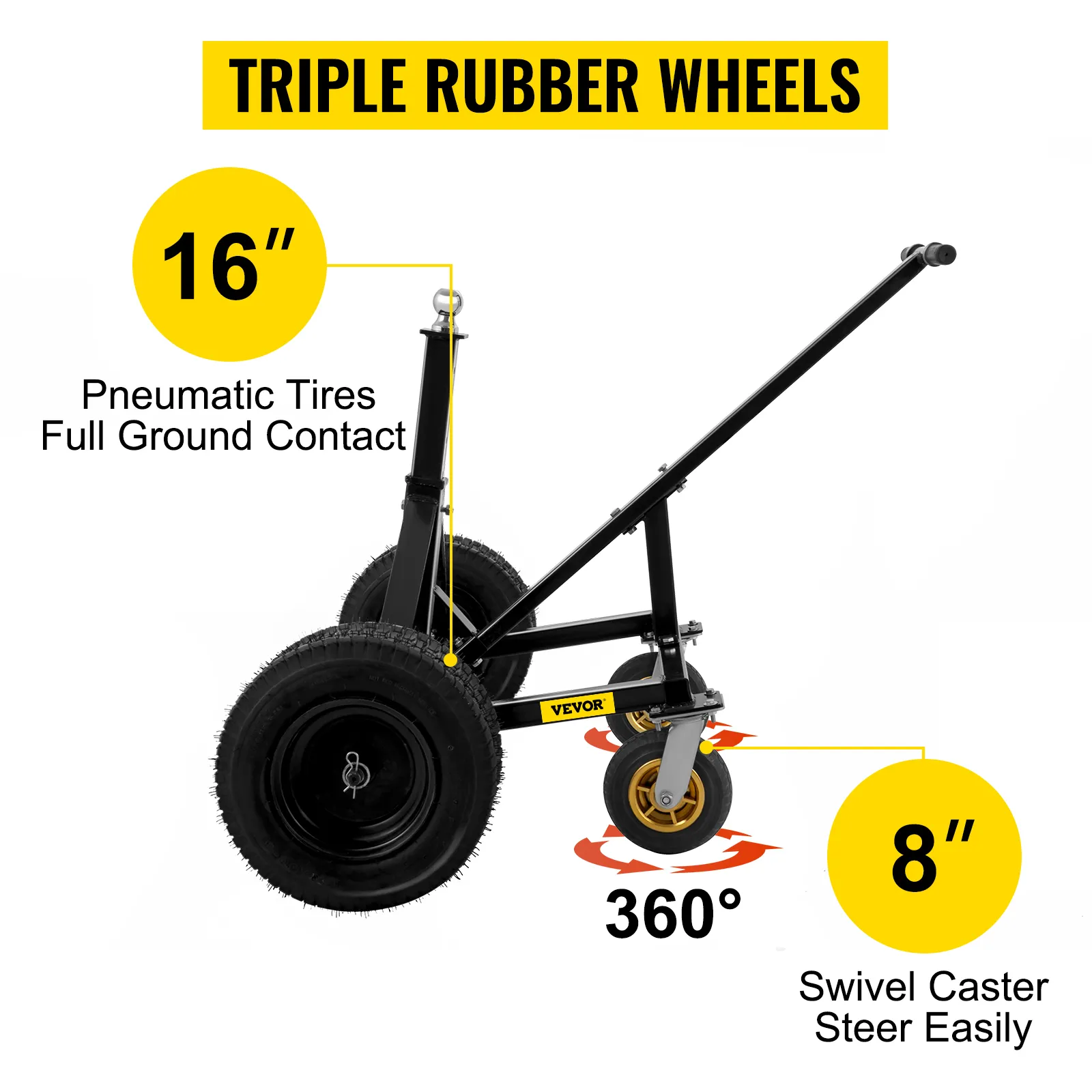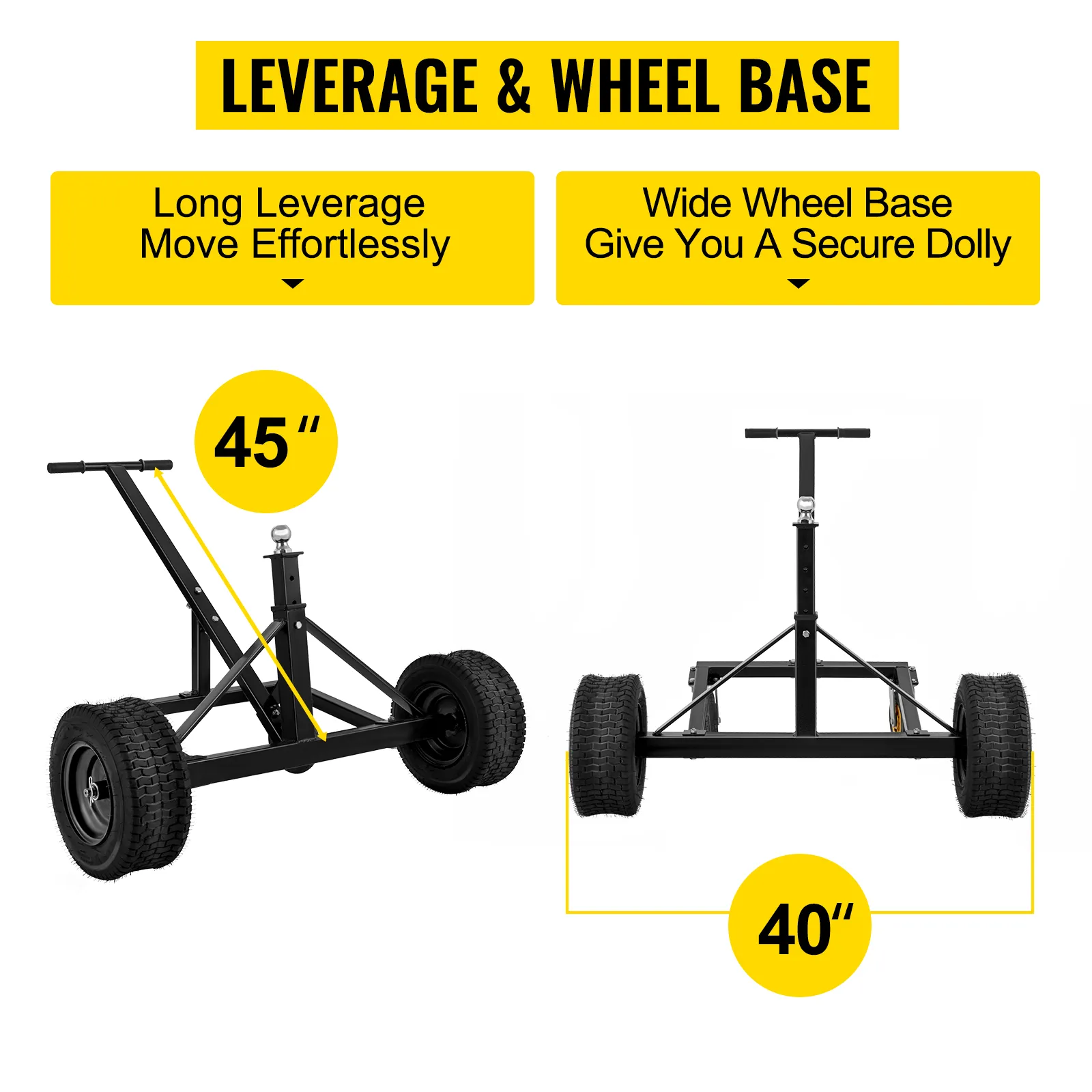 Providing a long leverage and makes it even easier to move heavy trailers and tandem trailers. In addition, a broad wheelbase adds stability to your trailer.