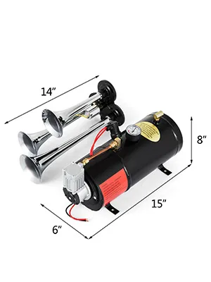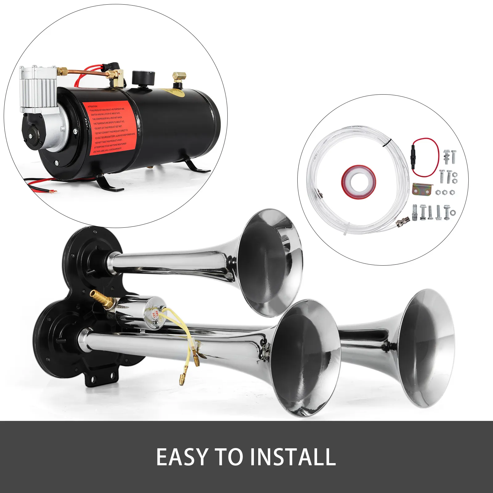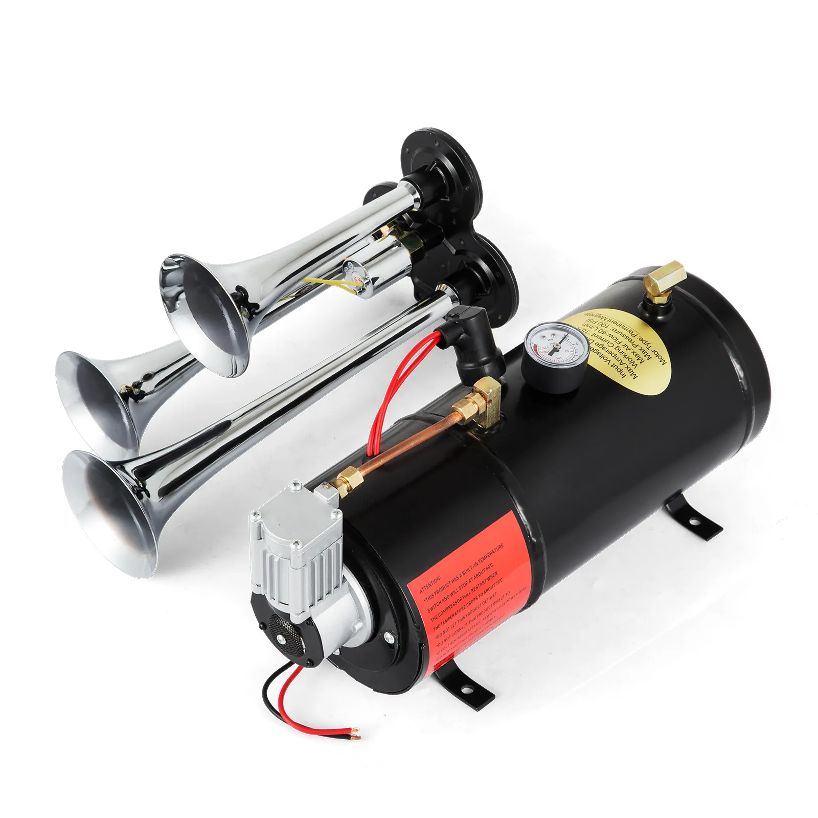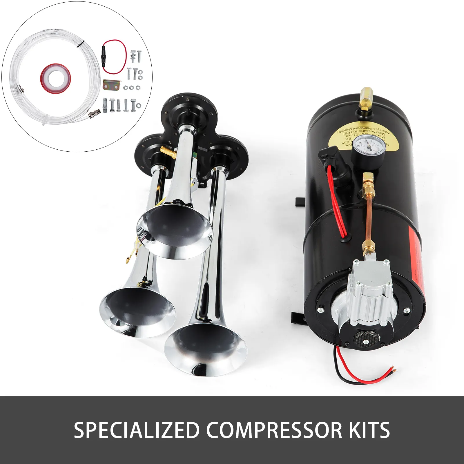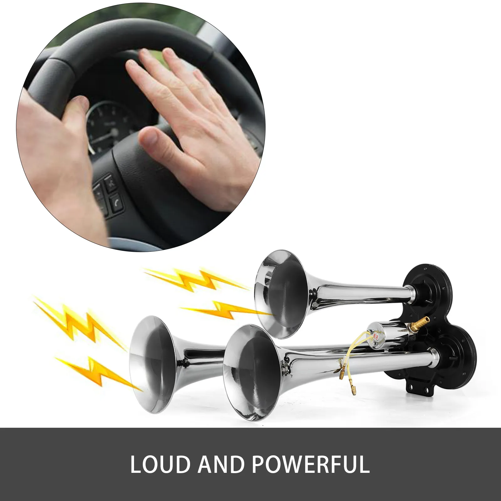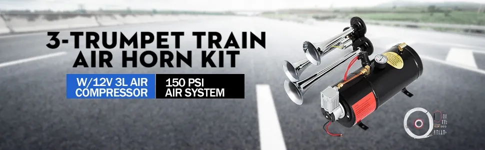 The three-trumpet air horn compressor kit will produce a powerful 150 DB sound and blare out a warning that can't be ignored. It is designed for customers looking for a loud and affordable air horn and also for improving the safety of family and driver travel.