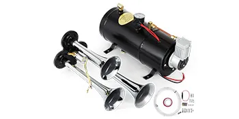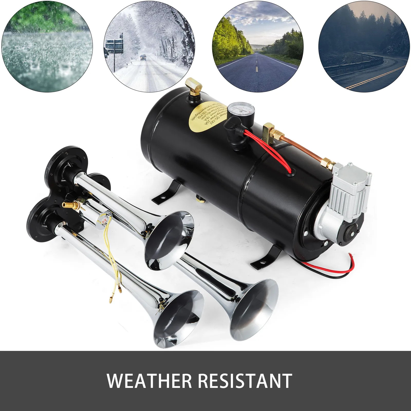 Our new 3 trumpet air horn kit is made of heavy duty chrome trumpets that are designed for weather resistance, tough enough to withstand various weather conditions.