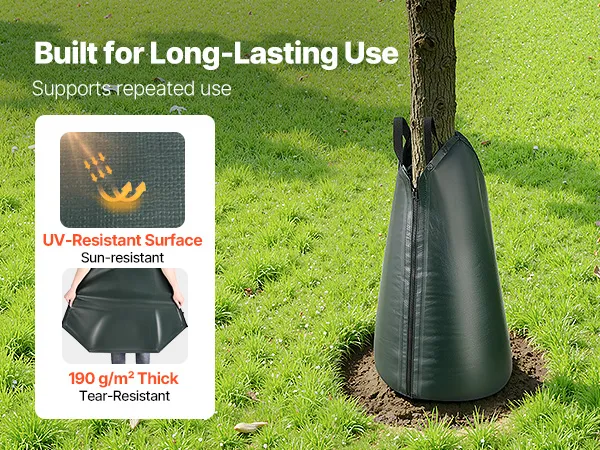 Reliable Quality: Made from tough PE woven material, these planting water bags ensures durability and wear resistance that make it won't easily scratch or rip against tree bark. Reinforced nylon zippers and sturdy handles support the full weight of a filled bag