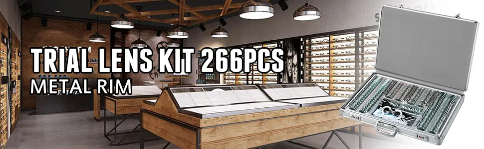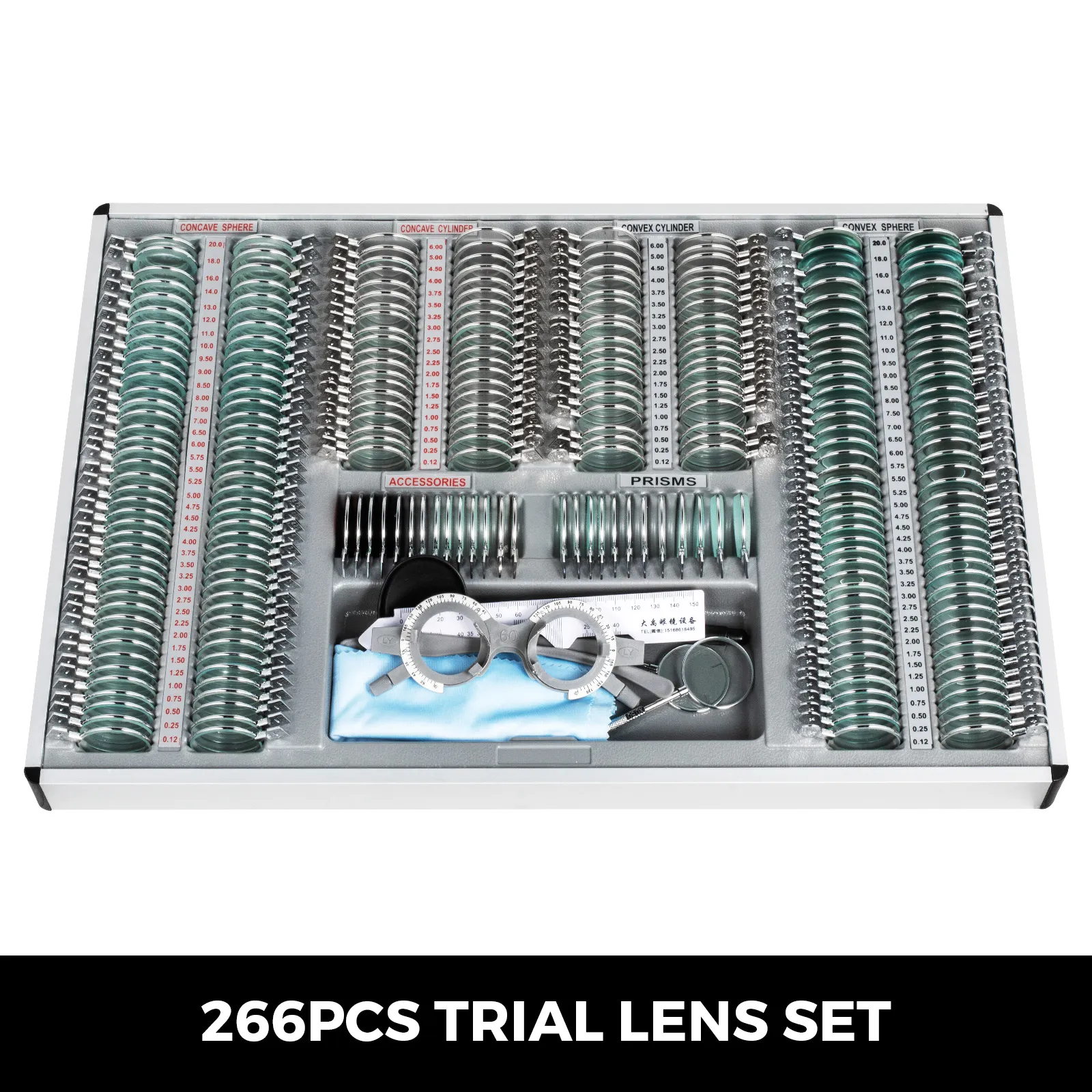 The 266pcs Trial Lens Set contains 160 pcs sphere lenses, 80 pcs cylindrical lenses, 12 pcs prisms, 14 pcs accessories.