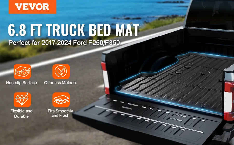 VEVOR Truck Bed Mat, Compatible with 2017-2024 Ford F250/F350, TPE Truck Bed Liner Mat Fits for 6.8 FT Bed, Thick and Heavy-Duty Bed Mat Car Accessories for All-Weather Protection, Prevent Slipping