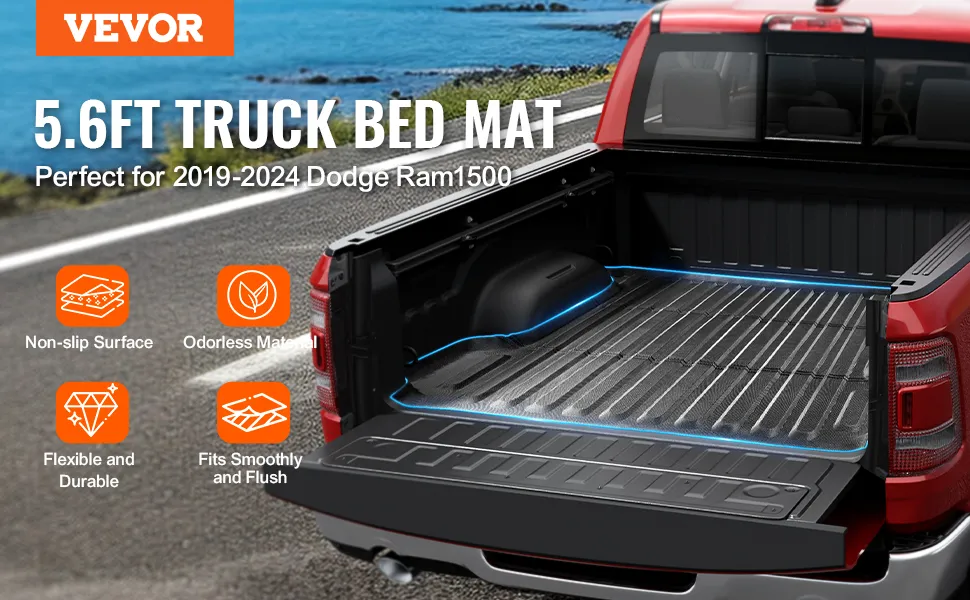 VEVOR Truck Bed Mat, Compatible with 2019-2024 Dodge Ram1500, TPE Truck Bed Liner Mat Fits for 5.6 FT Bed, Thick and Heavy-Duty Bed Mat Car Accessories for All-Weather Protection, Prevent Slipping