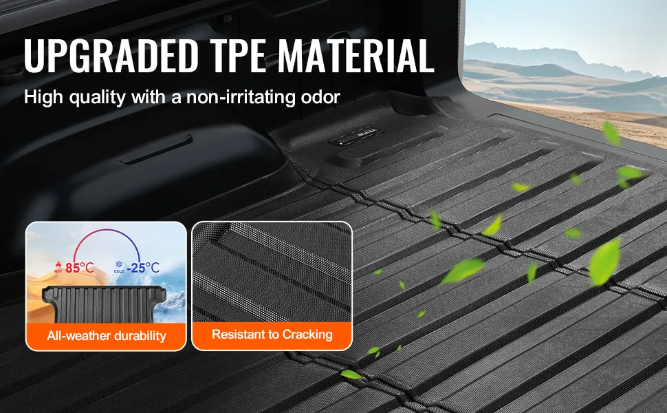Odor-free TPE Material: Made from upgraded, durable TPE material, this truck bed liner mat withstands all weather conditions, protecting against outdoor exposure and sharp objects. It is free from irritating smells, ensuring secure use.