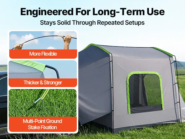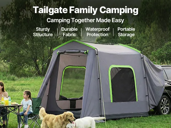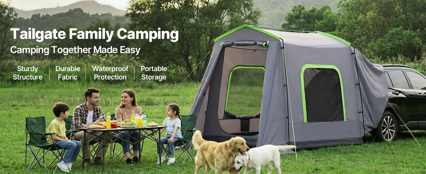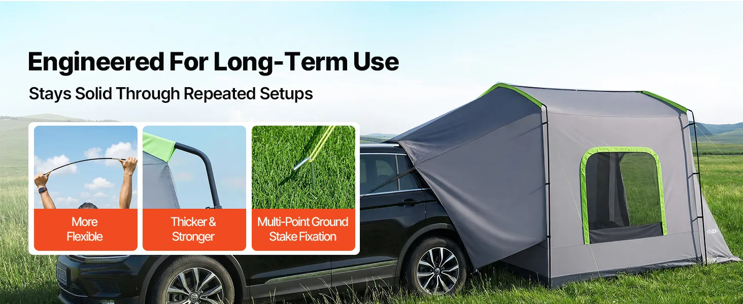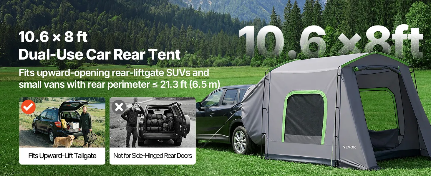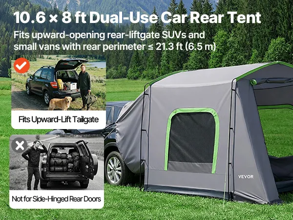 Dual-Use Tent: Connect our car camping tent to your SUV's tailgate to expand camping space, or use it independently as a standalone shelter — easy assembly, convenient, and ready for outdoors (Fits Upward-Lift Tailgate; Not for Side-Hinged Rear Doors)