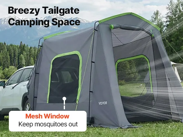 Sunshade & Ventilation: Designed with a ventilated door and mesh windows, this SUV tailgate tent allows fresh air to flow in while keeping insects and glare out, creating a cool, breathable space for daytime naps and evening gatherings