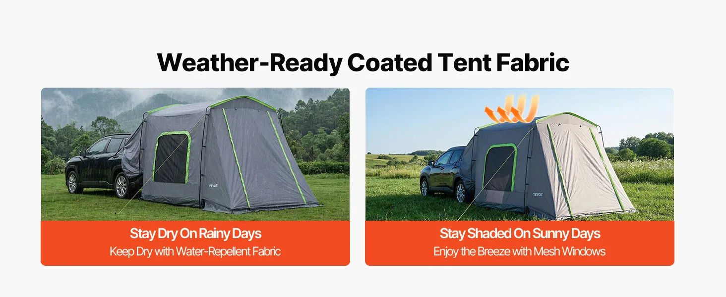 Waterproof & Durable: PU3000mm waterproof fabric, combined with carefully taped seams and tight stitching, helps block rain penetration and resist tearing, keeping the tailgate lounging area dry, comfortable, and built to last