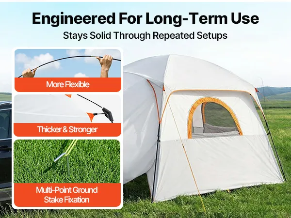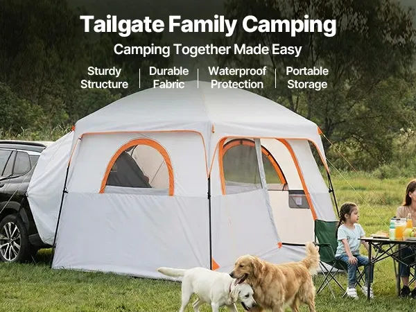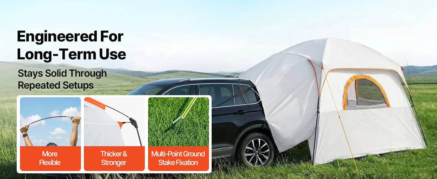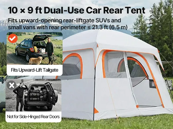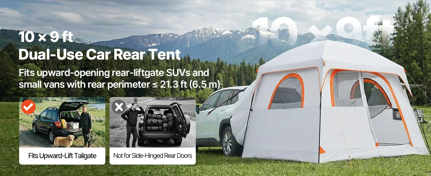 Dual-Use Tent: Connect our car camping tent to your SUV's tailgate to expand camping space, or use it independently as a standalone shelter — easy assembly, convenient, and ready for outdoors (Fits Upward-Lift Tailgate; Not for Side-Hinged Rear Doors)
