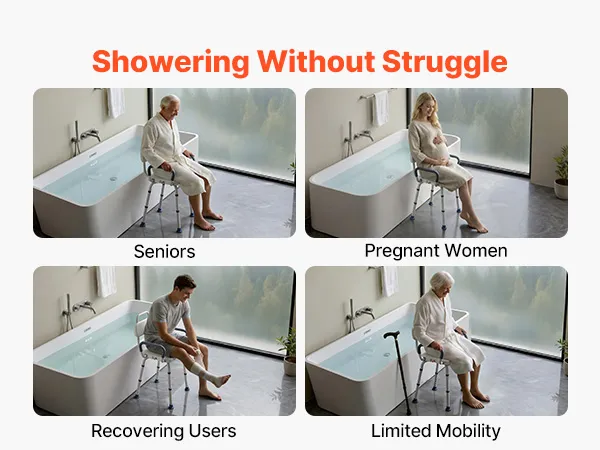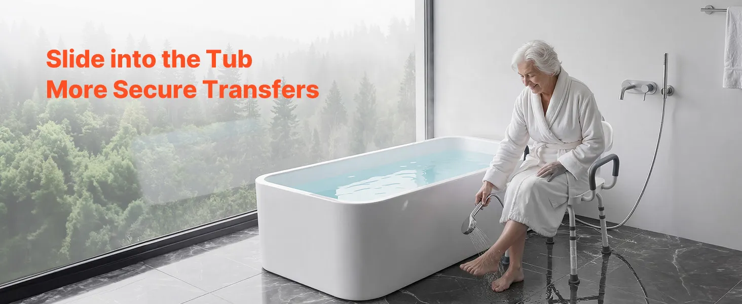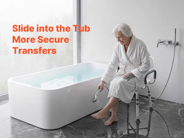 Our tub transfer bench features a reinforced aluminum alloy frame designed for humid bathroom environments. The lightweight construction makes it easy to move while maintaining durability.