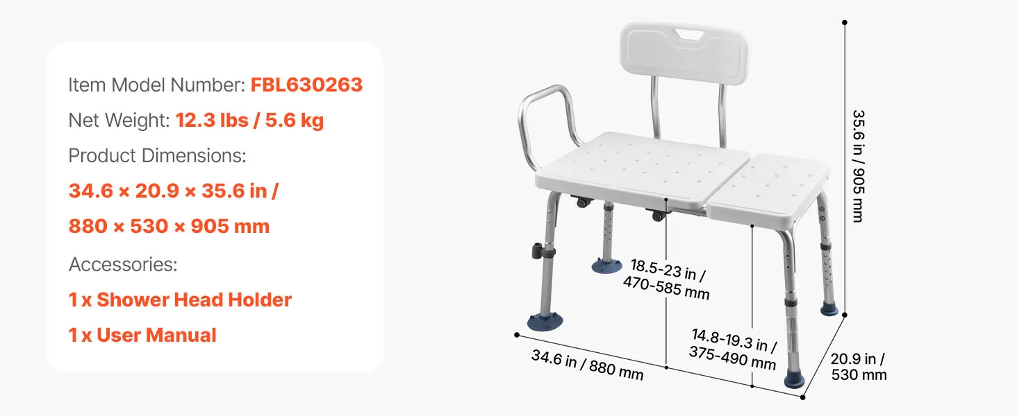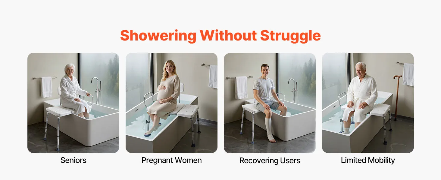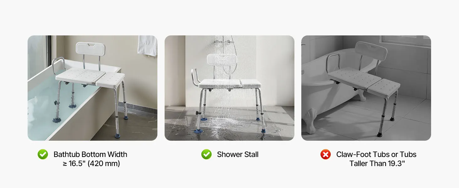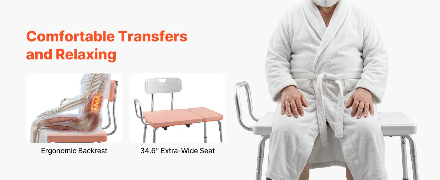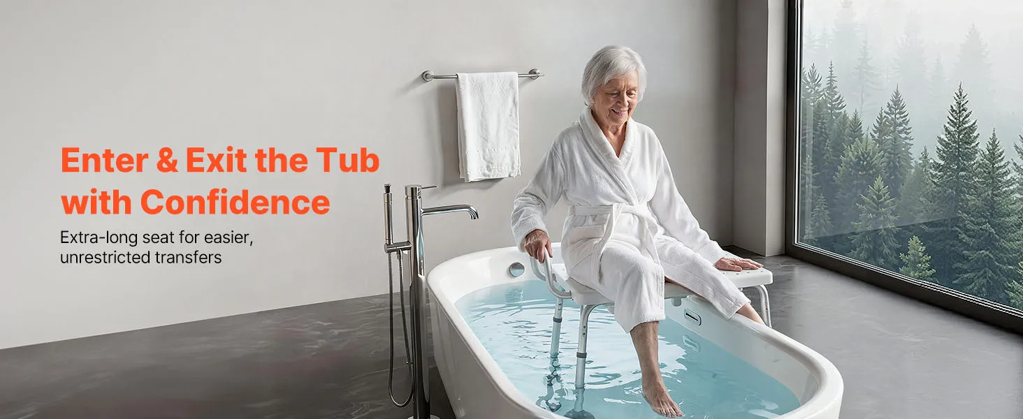 This tub transfer bench is designed to make entering and exiting the bathtub easier and safer. It provides stable support for users with limited mobility, helping add confidence and peace of mind during every bath.