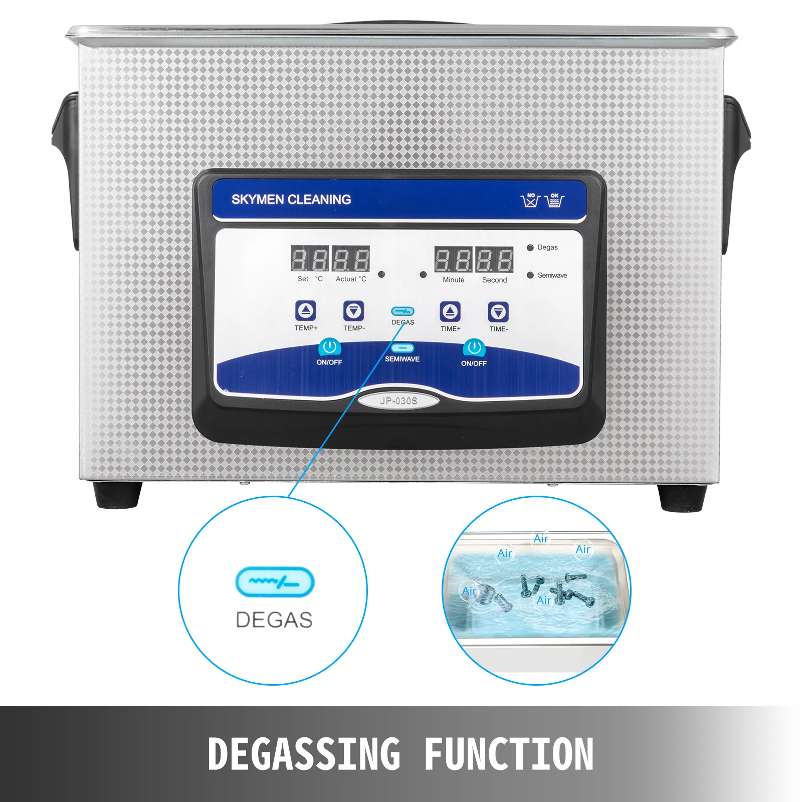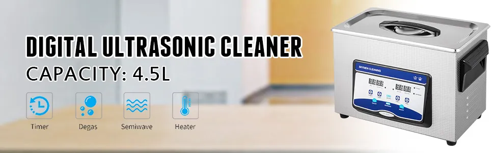 This ultrasonic cleaner has functions of degassing, heating, semi wave, and timing to achieve a gentle and robust cleaning effect without damaging your valuables while making them look like new. This ultrasonic cleaner is suitable for cleaning jewelry, glasses, brooches, dentures, toothbrushes, dentures, and other valuables! Ideal equipment for the optical shop, jewelry shop, watch shop, mobile phone repair shop, dental, office, home, and other stuff.